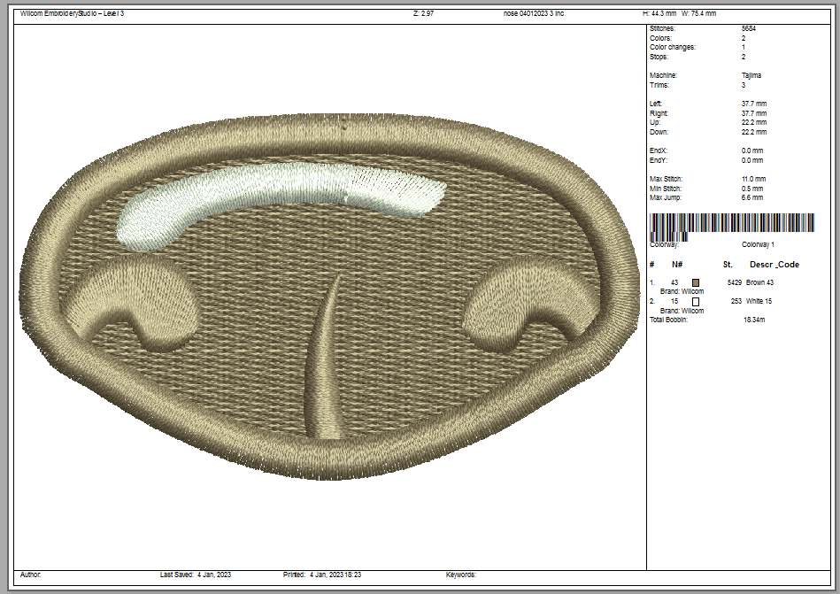 75 mm x 55 mm / 3" x 2.2" – 9,800 stitches