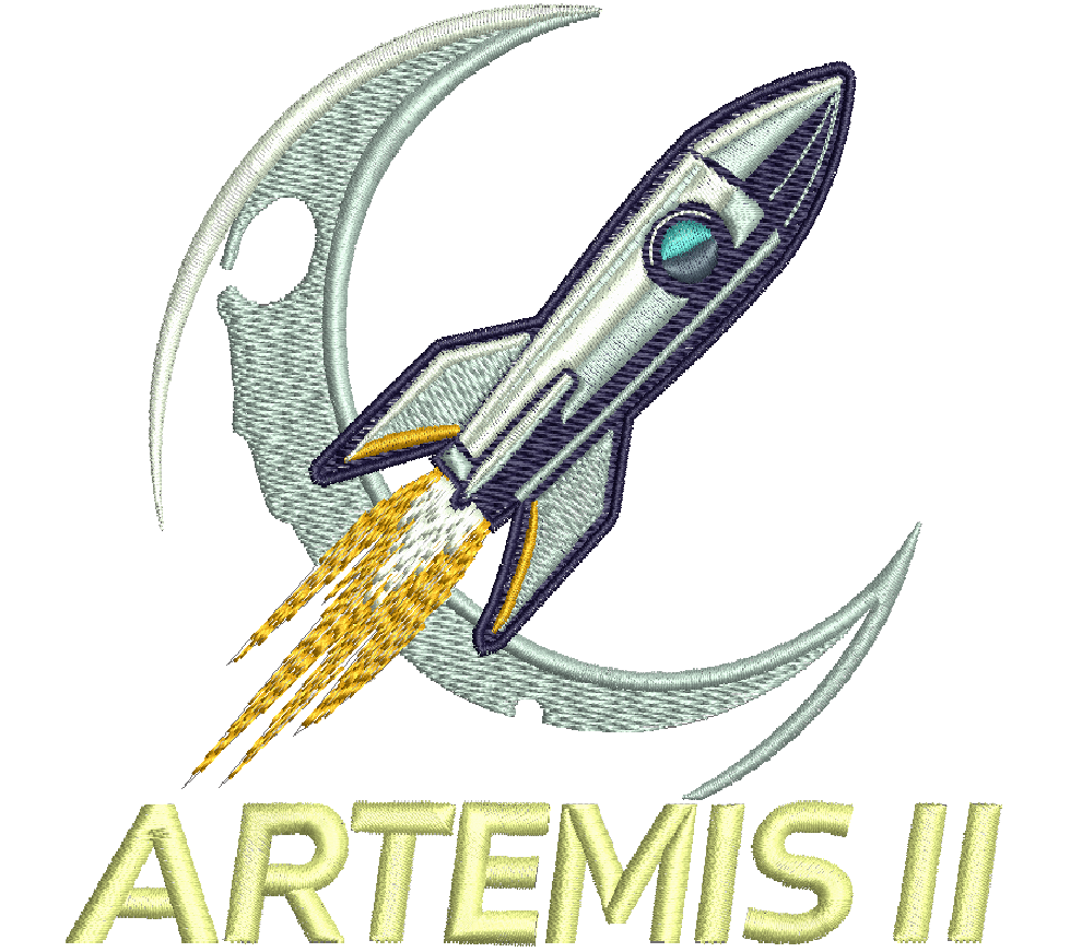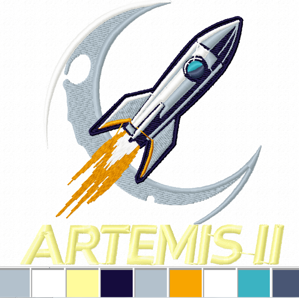artemis embroidery design, rocket embroidery file, nasa inspired embroidery, space shuttle embroidery, moon mission embroidery, astronaut theme design, sci fi embroidery pattern, spacecraft embroidery file, modern rocket embroidery, broderie fusée, stickerei rakete, ricamo razzo