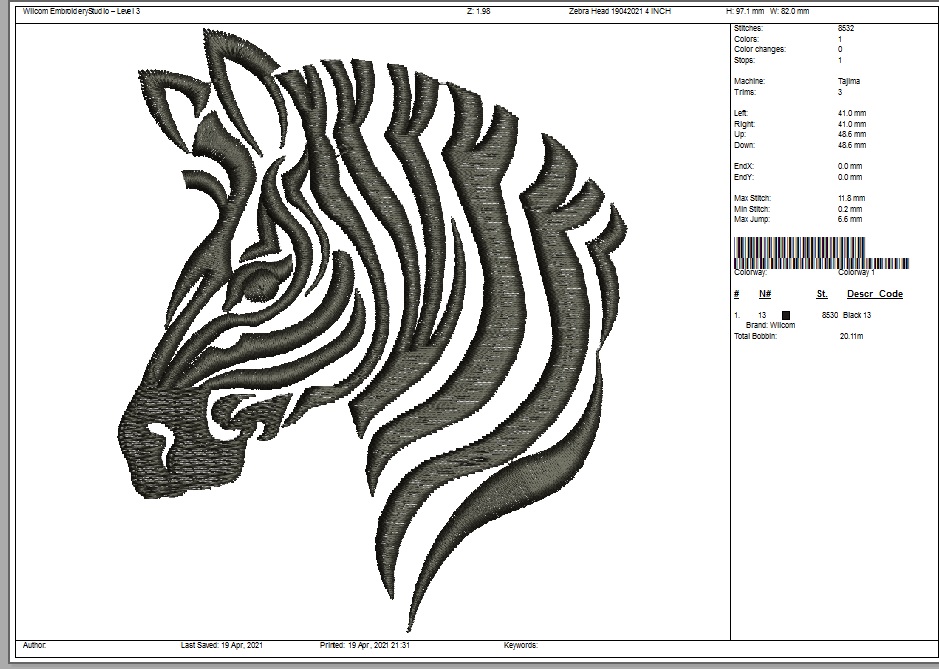 Home :: By Technique :: Embroidery :: Zebra Face Machine Embroidery Design