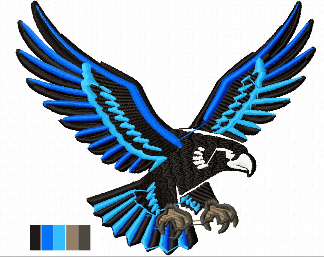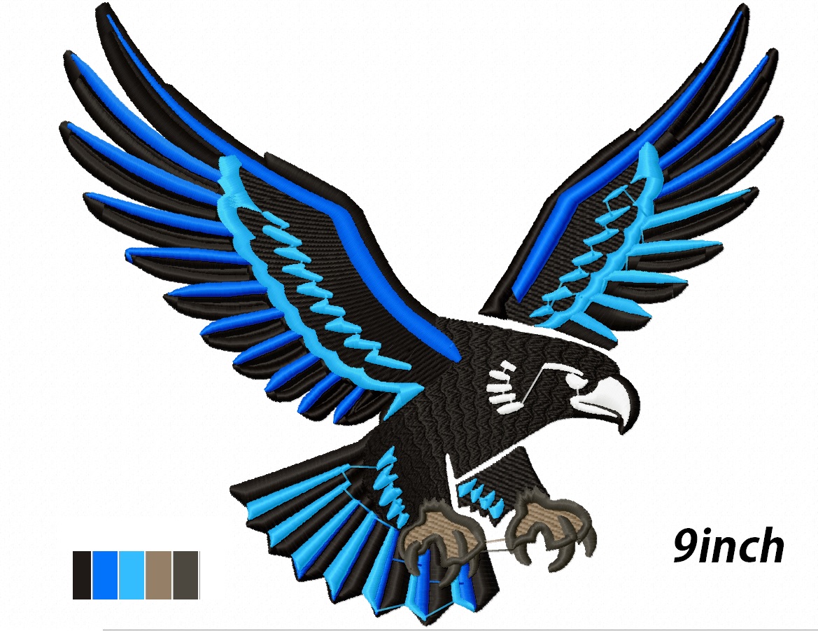 soaring eagle embroidery design, flying eagle machine embroidery, bald eagle embroidery pattern, majestic eagle embroidery, blue accent eagle design, spread wings eagle embroidery, patriotic eagle embroidery file, bird of prey machine embroidery, soaring bird embroidery, eagle in flight embroidery, digital eagle patch design, embroidered eagle applique, aigle broderie machine, adler stickerei design, aquila ricamo macchina