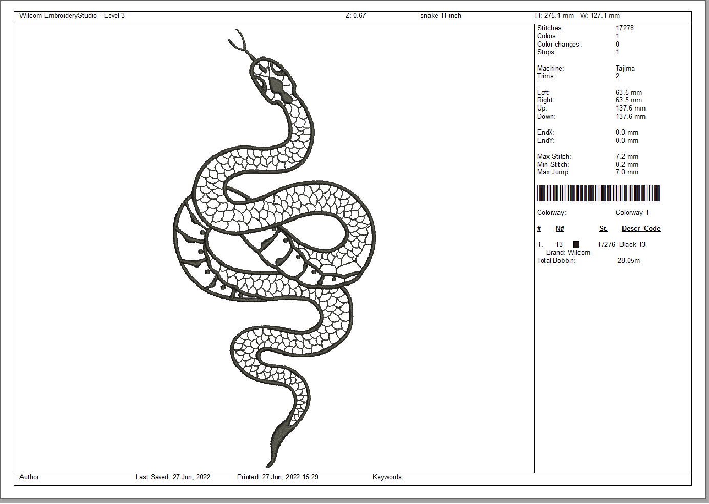 275 mm x 130 mm / 10.8" x 5.1" – 17,500 stitches