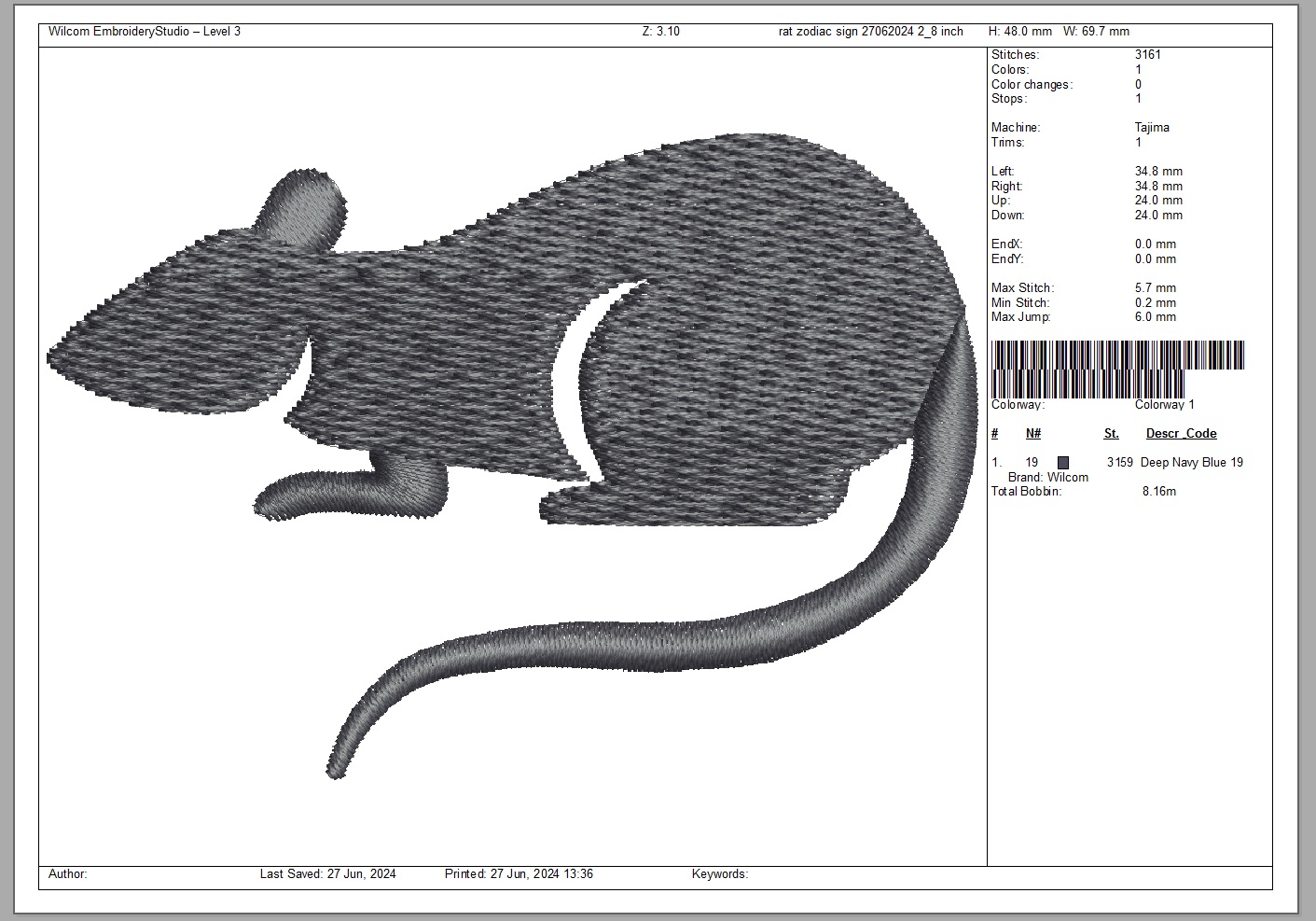 Rat Chinese Zodiac Sign Machine Embroidery DesignStabilization is necessary