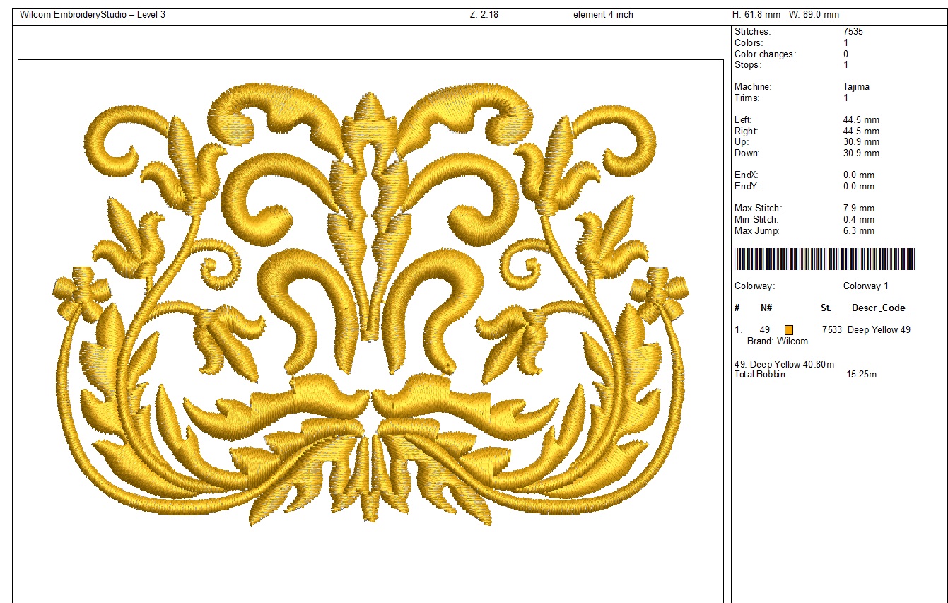 200 mm x 42 mm / 8" x 1.6" – 18,500 stitches