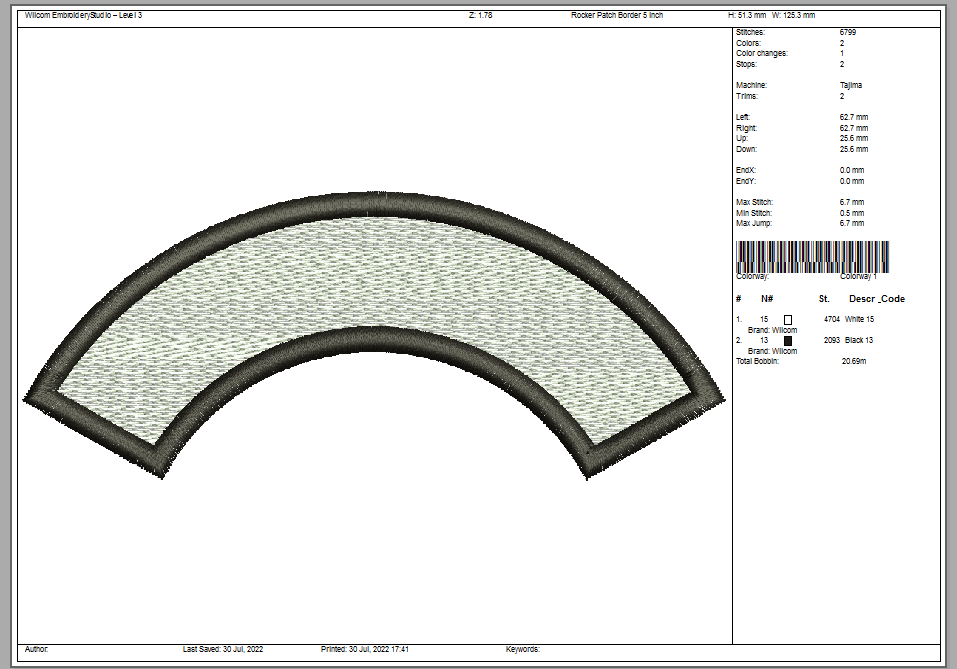125 mm x 50 mm / 5" x 2" – 6,900 stitches