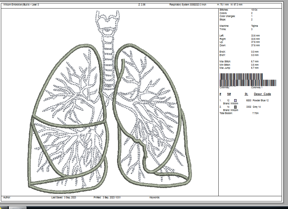 Realistic Lungs Respiratory System Machine Embroidery Design for Medical Projects and Anatomy