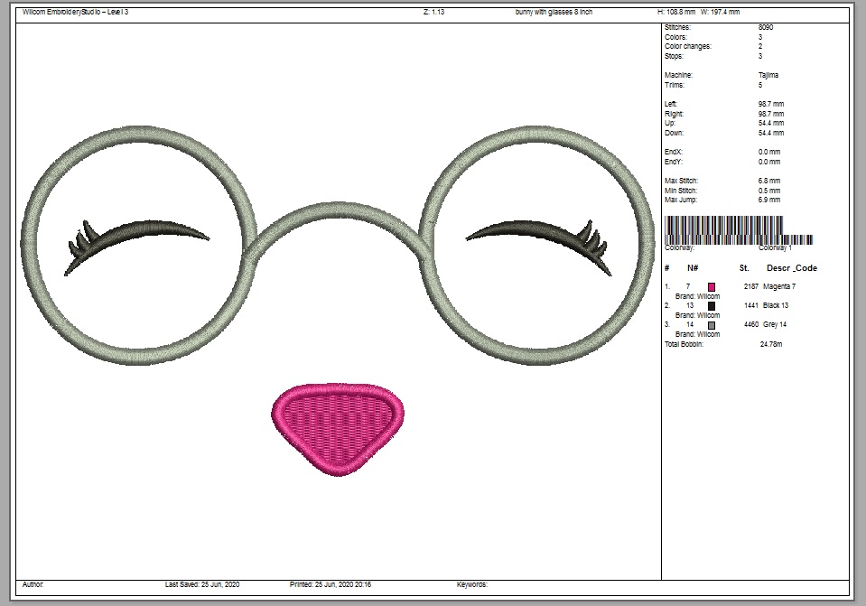 Muzzle Bunny with Glasses Machine Embroidery Design06092025