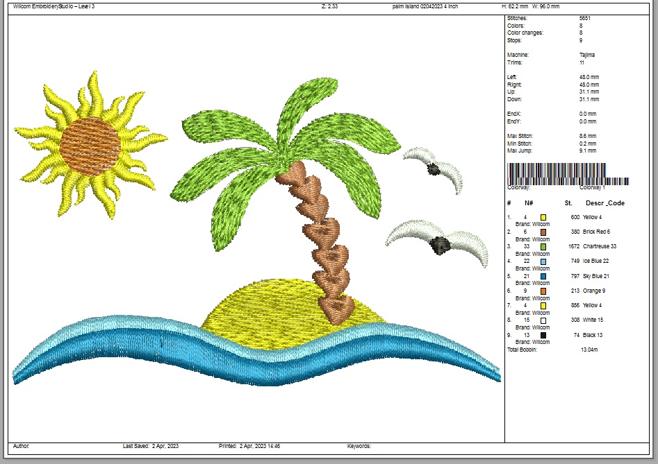 Available file formats: DST, EXP, XXX, ART, PES, HUS, SEW, JEF, JEF+, VIP, VP3.