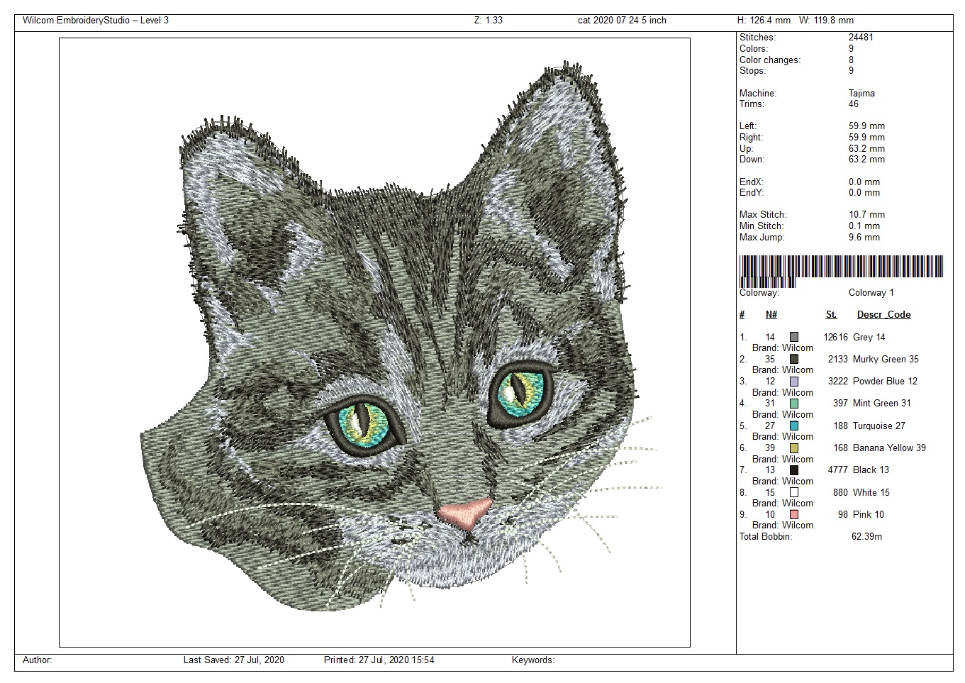 140 mm x 130 mm / 5.6 inch x 5.2 inch / 28,000 stitches