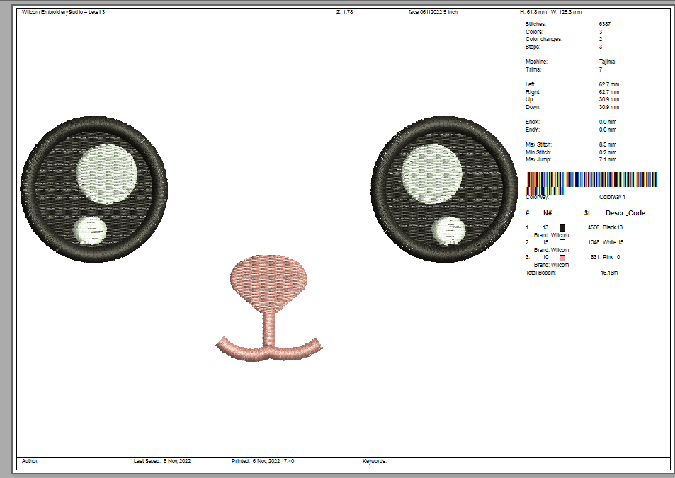 175 mm x 85 mm / 7" x 3.4" – 11,000 stitches