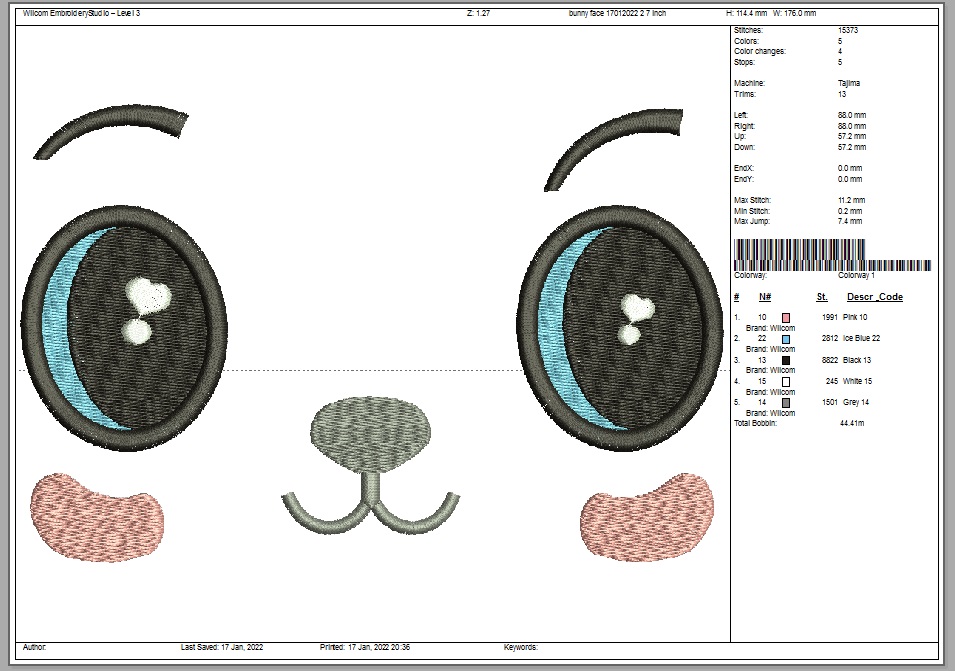 175 mm x 120 mm / 7 inch x 4.8 inch – 15,600 stitches