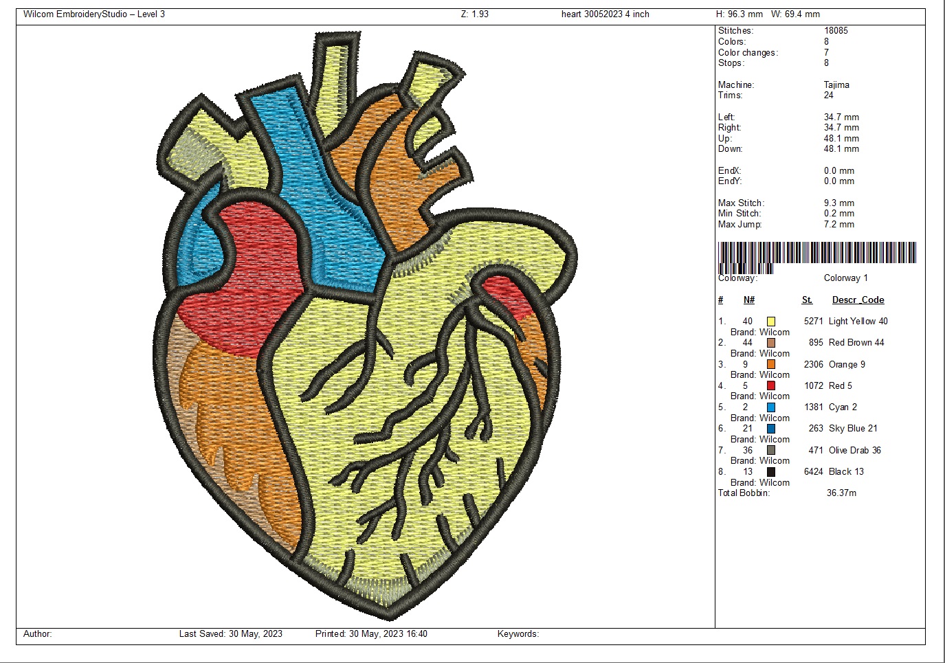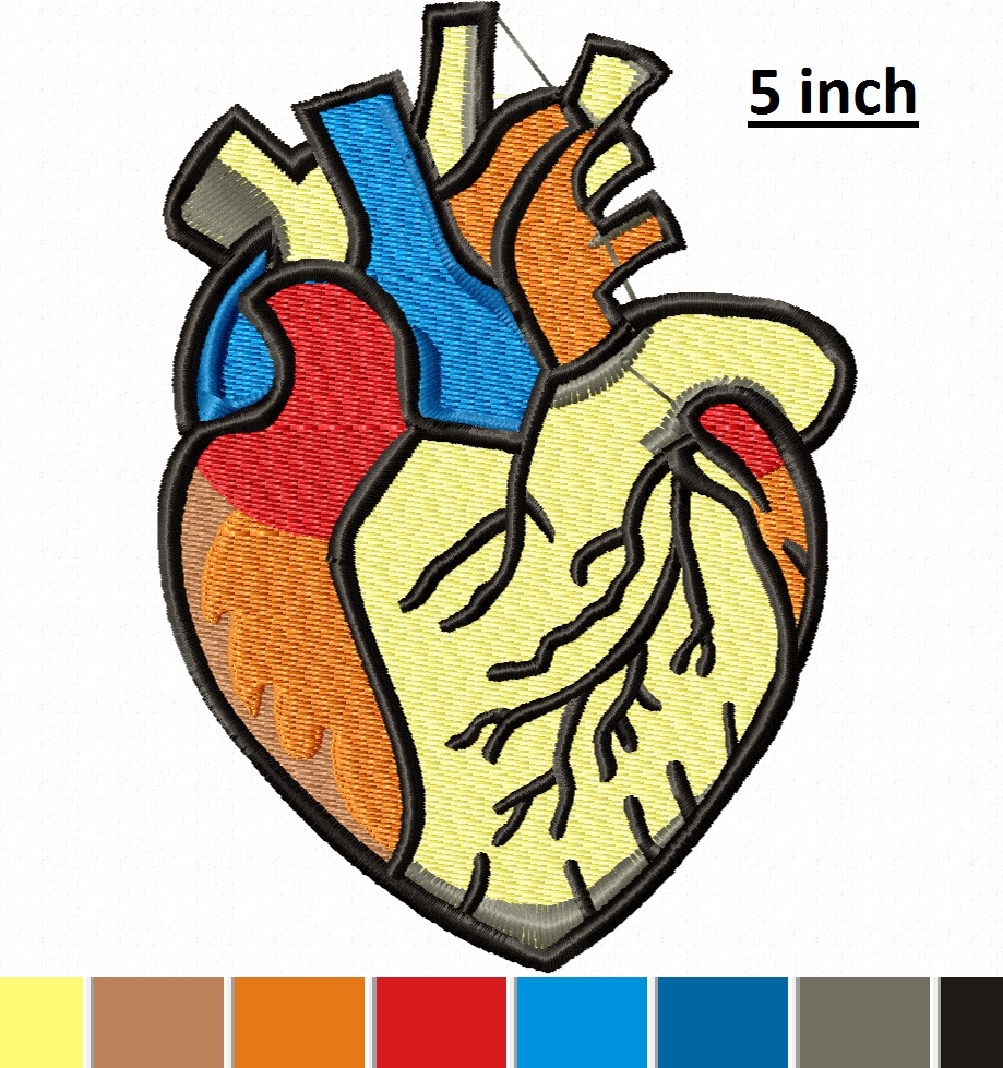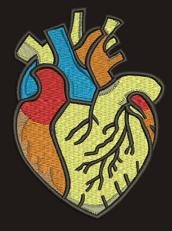 anatomical heart embroidery, human heart embroidery design, medical anatomy embroidery, realistic heart embroidery, science embroidery pattern, unique embroidery art, machine embroidery design, body organ embroidery, digital embroidery file, embroidery for scrubs, stickerei herz, broderie cœur, ricamo cuore