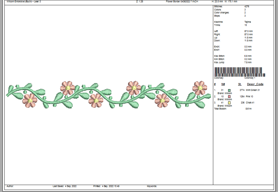275 mm x 34 mm / 11" x 1.6" – 6,900 stitches