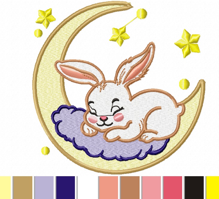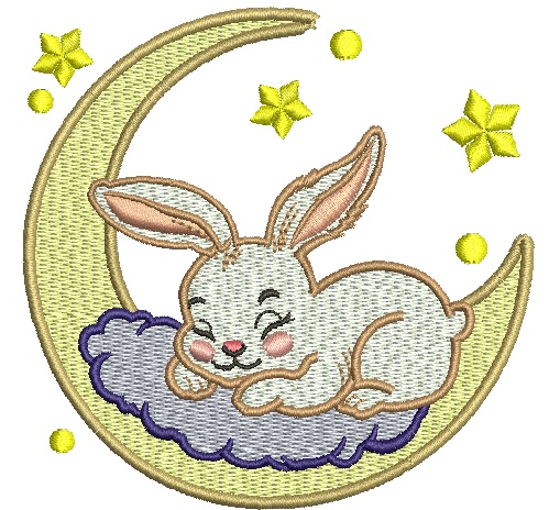 A Bunny Sleeps on the Moon Machine Embroidery Design