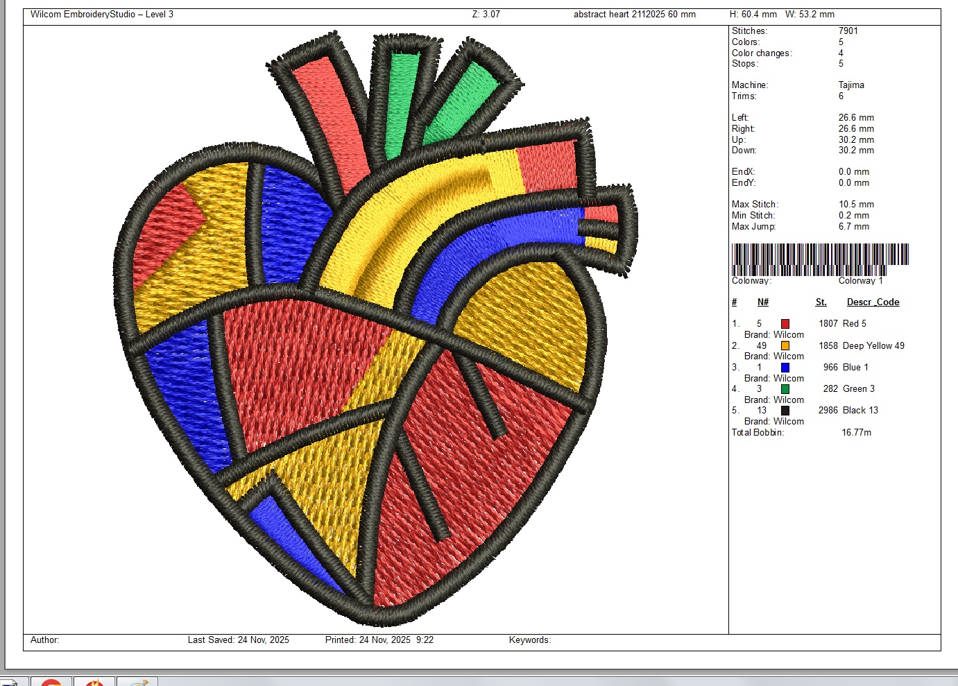 Beautiful abstract heart embroidery design, ideal for clothing accents, romantic projects, decorative textiles, gifts, and modern embroidery themes. Professionally digitized and tested for smooth, clean stitching.