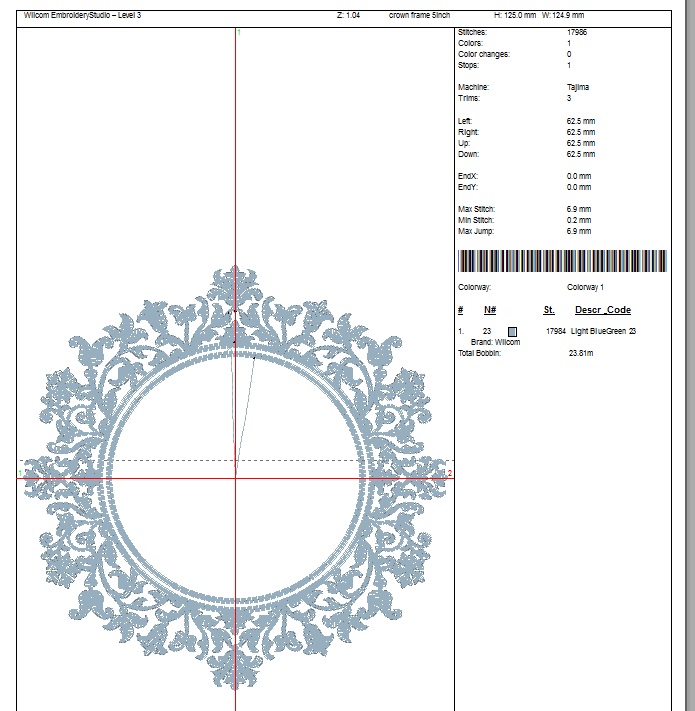 150 mm x 150 mm / 6" x 6" – 23,000 stitches