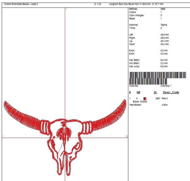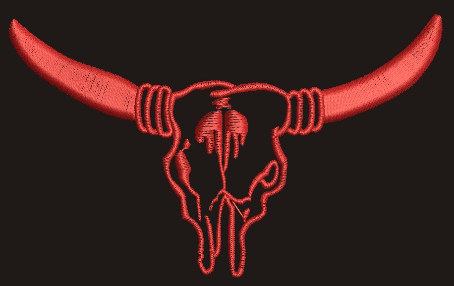 Longhorn bull skull machine embroidery design western cattle skull for hats jackets and accessories