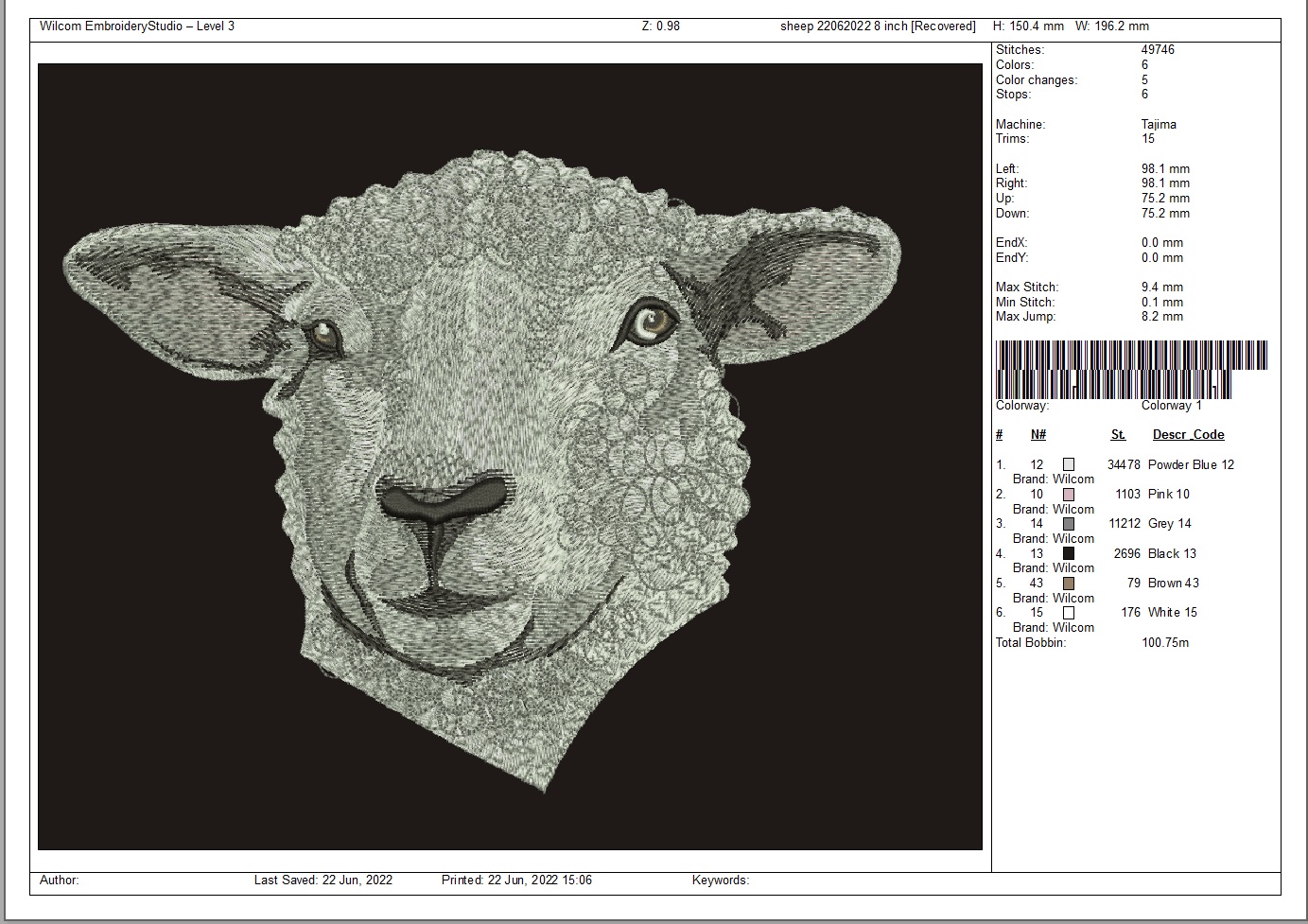 200 mm x 150 mm / 8" x 6" – 52,500 stitches