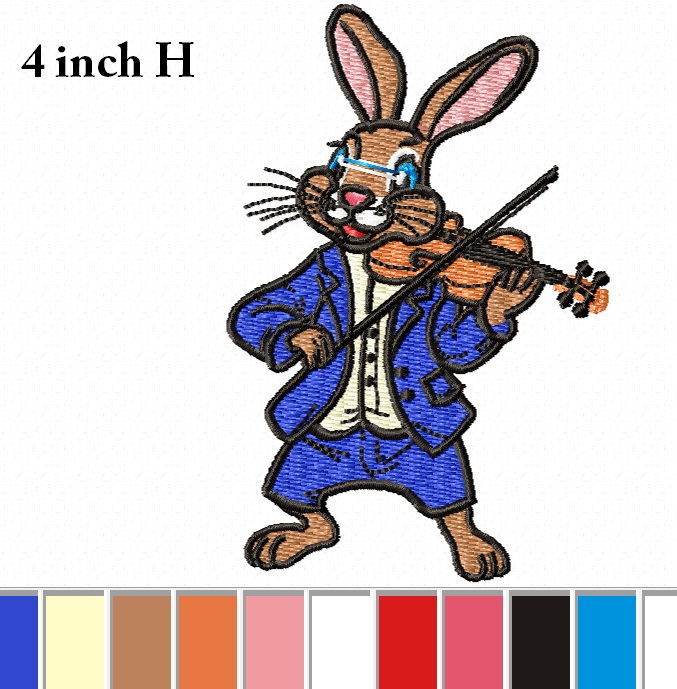 rabbit embroidery design, cartoon rabbit embroidery, bunny embroidery file, animal embroidery design, violin embroidery design, music embroidery pattern, kids embroidery design, cute animal embroidery, digital embroidery file, machine embroidery design, embroidery for clothing, stickerei hase, broderie lapin, ricamo coniglio