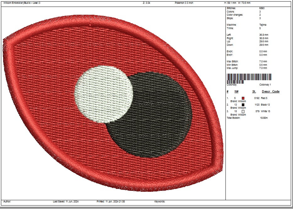 75 mm x 60 mm / 3" x 2.4" – 7,400 stitches