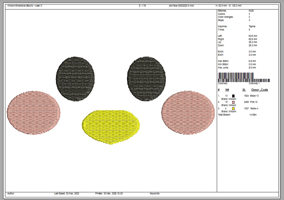 125 mm x 55 mm / 5" x 2.2" – 5,600 stitches