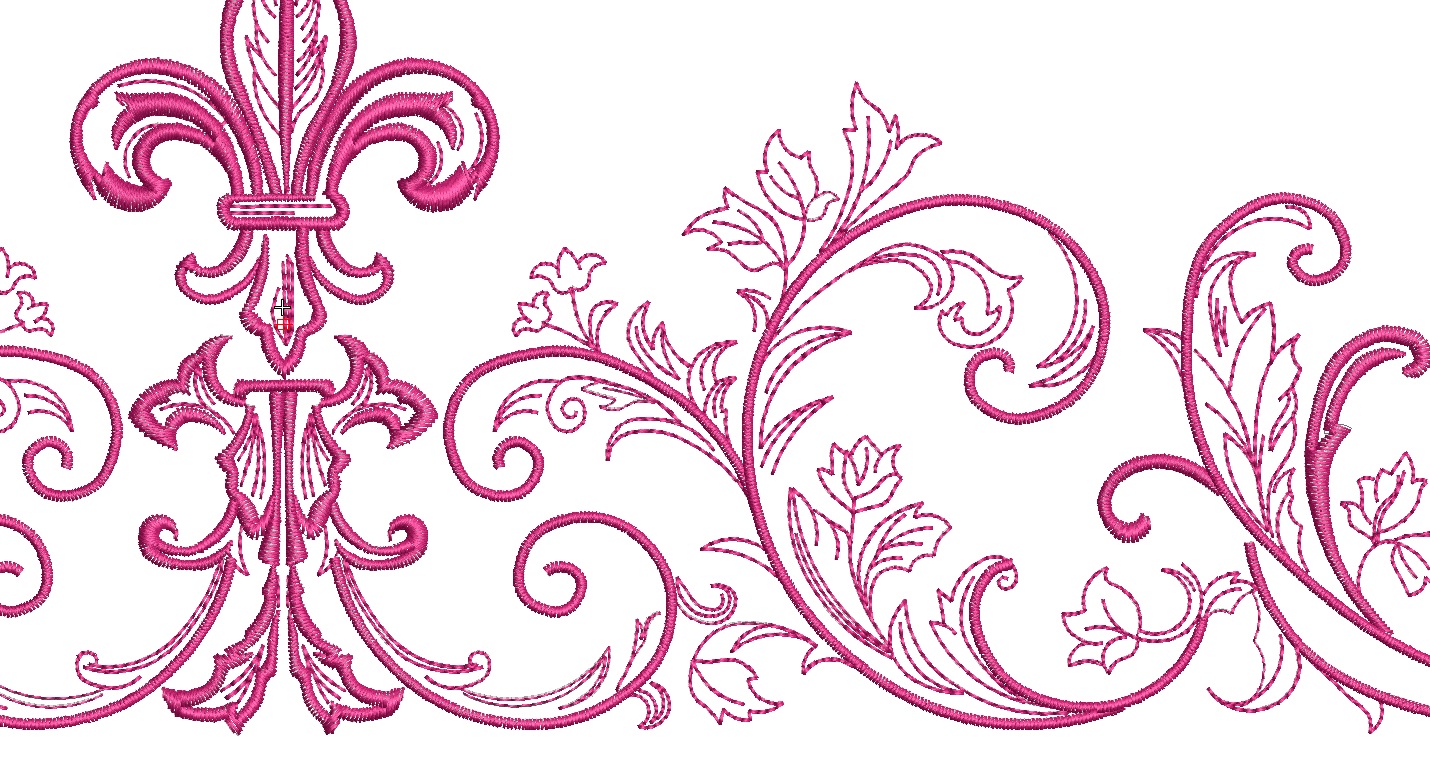 floral border, scroll embroidery, baroque design, ornament embroidery, long border, vintage scroll, flourish design, pink embroidery, decorative border, bordure broderie, stickerei bordure, ricamo bordo