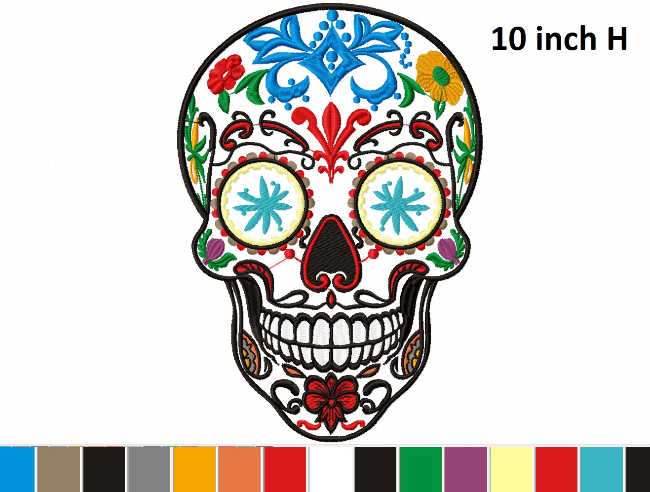 sugar skull embroidery design, day of the dead embroidery, calavera machine embroidery, mexican sugar skull design, dia de los muertos embroidery, skull floral embroidery, halloween skull embroidery, gothic sugar skull, ornate skull embroidery, large sugar skull pattern, festive skull embroidery, craneo calavera bordado, teschio zucchero ricamo, totenkopf stickerei zucker, skull with flowers embroidery, colorful skull embroidery, cinco de mayo embroidery, tattoo style skull embroidery