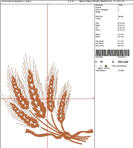 Wheat Spikelets with Ribbon Machine Embroidery Design 4 Sizes