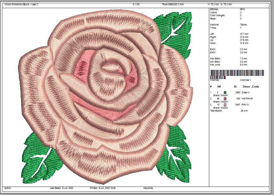 75 mm x 75 mm / 3" x 3" – 5,000 stitches