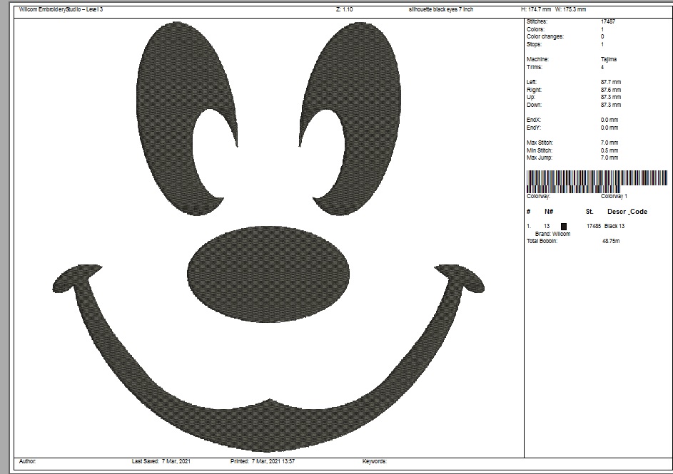 Silhouette Black Eyes Doll Face Machine Embroidery Design