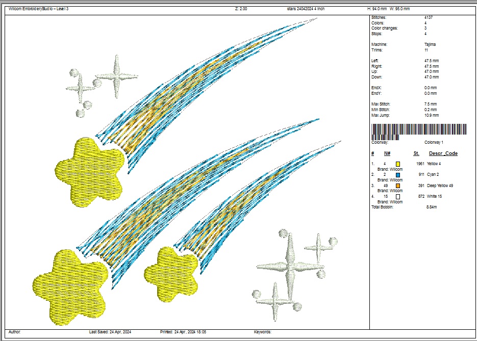 Available file formats: DST, EXP, XXX, ART, PES, HUS, SEW, JEF, JEF+, VIP, VP3.