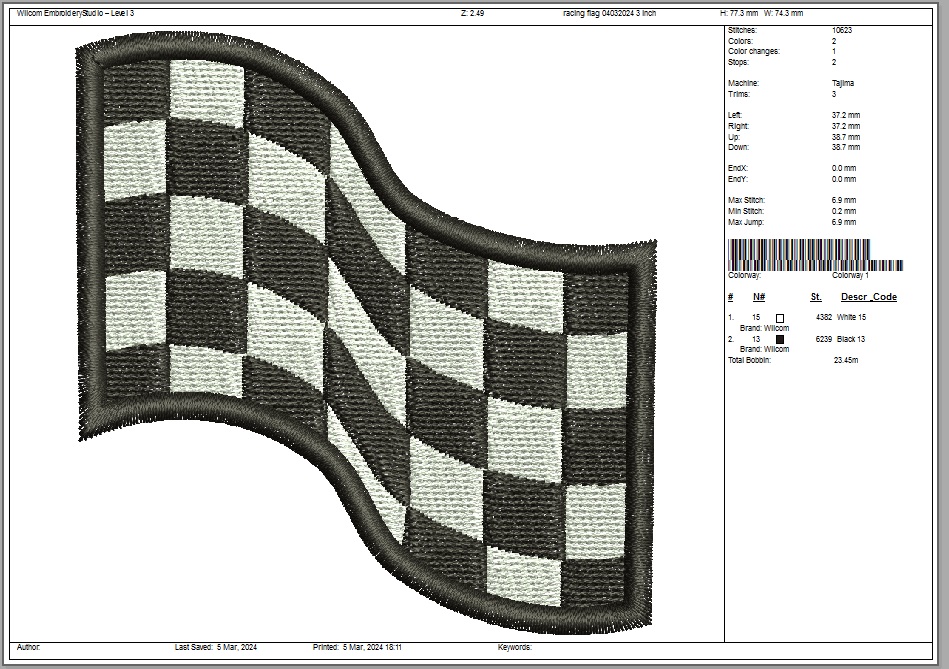 Racing Flag Machine Embroidery Design