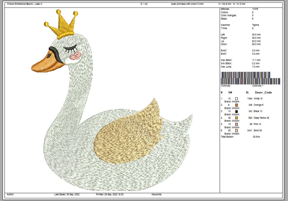 Elegant Swan in Princess Crown Machine Embroidery Design