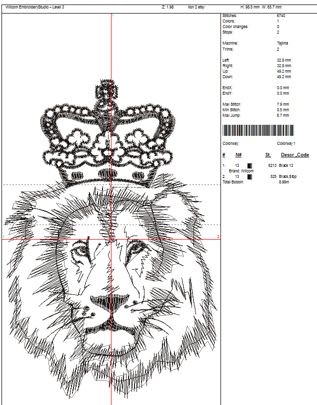 100 mm x 65 mm / 4" x 2.6" – 7,000 stitches