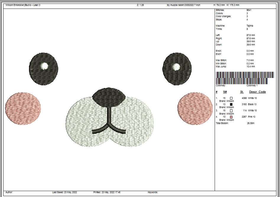 175 mm x 120 mm / 7" x 4.8" – 22,000 stitches