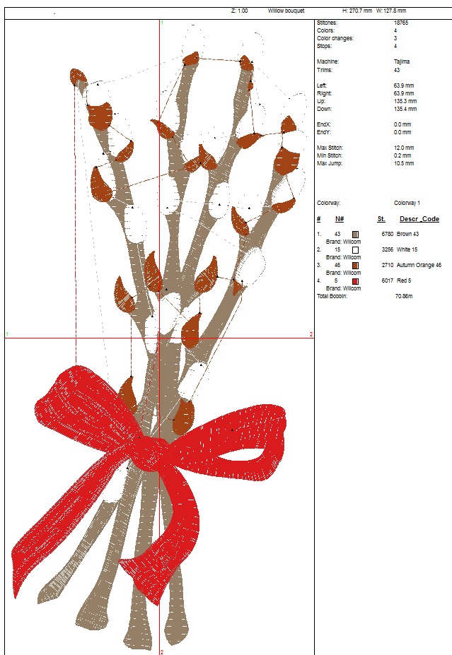 | Willow bouquet with red bow Machine Embroidery Design Stabilization is required
