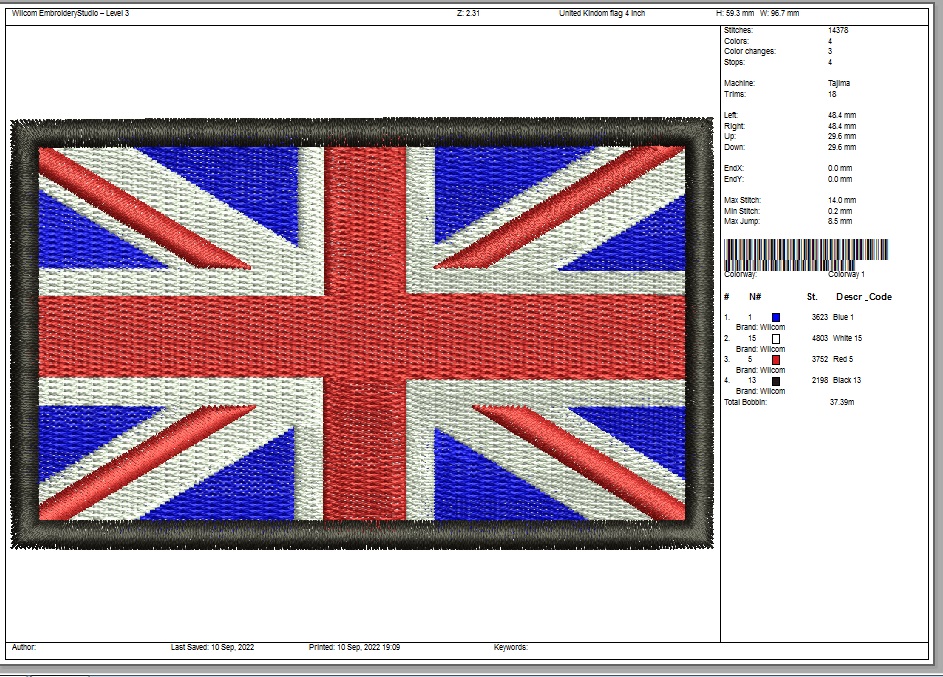 | United Kingdom Flag Patch Machine Embroidery Design Stabilization is necessary