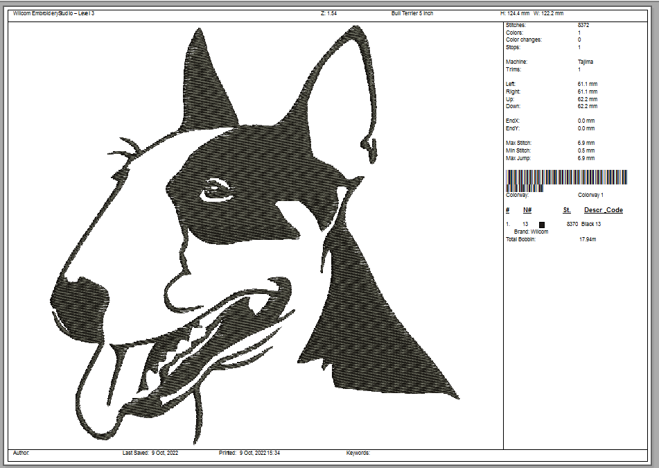 Bull Terrier Machine Embroidery Design