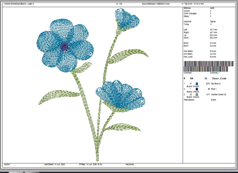 Simple Blue Wildflowers Machine Embroidery DesignSimple Blue Wildflowers Machine Embroidery Design