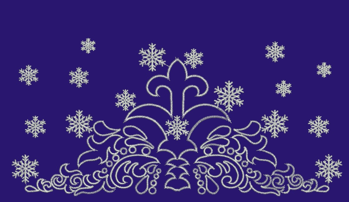 winter embroidery, snowflake embroidery, ornate border, christmas embroidery, fleur de lis embroidery, elegant embroidery, free embroidery design, machine embroidery, holiday embroidery, blue white embroidery, corner embroidery, side border embroidery, baroque embroidery