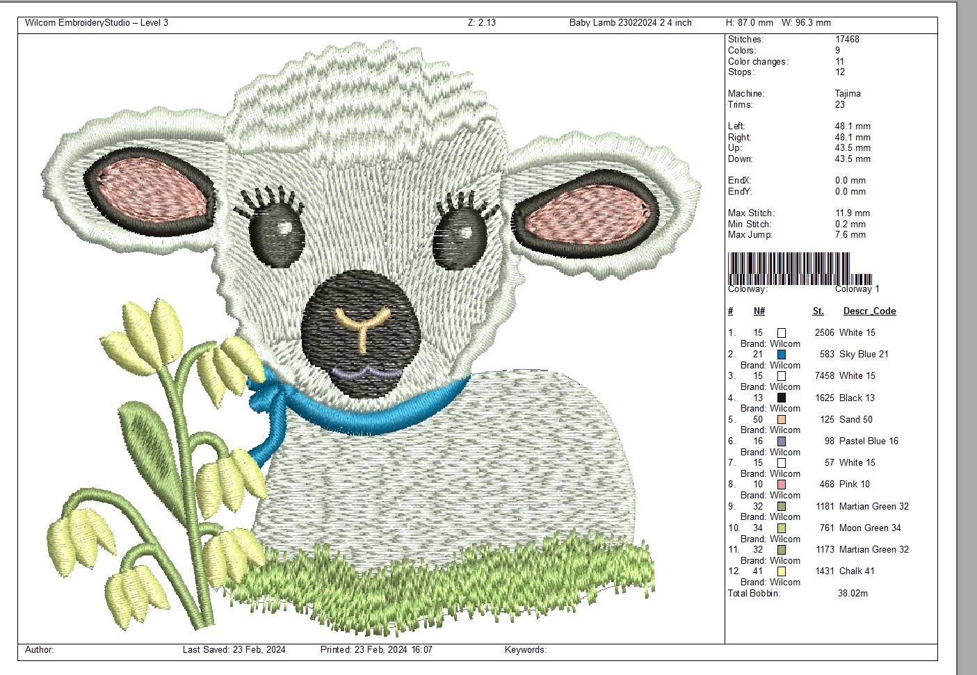 Baby lamb machine embroidery design for nursery decor soft toys and children projects