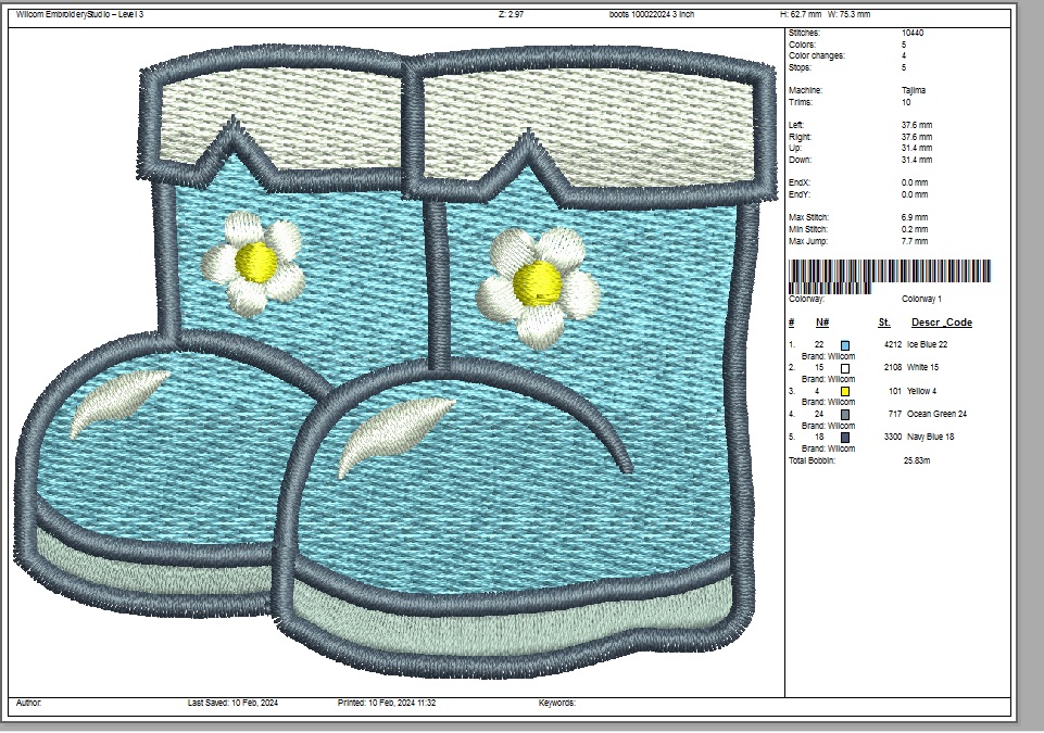 Home :: By Artist :: Papatedy :: Blue Floral Boots Machine Embroidery Design